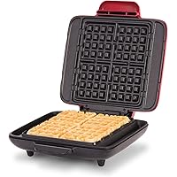 Dash DNMWM455RD Deluxe No-Drip Belgian Iron 1200W Maker Machine For Waffles, Hash Browns, or Any Breakfast, Lunch, & Snacks with Easy Clean, Non-Stick + Mess Free Sides, Red